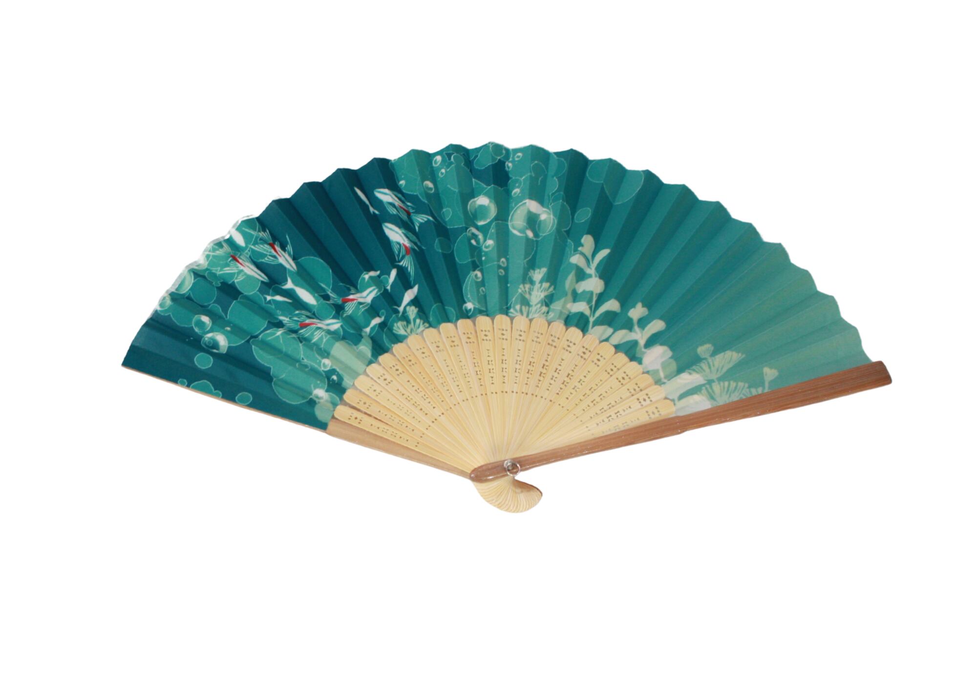 明るいブルーとベージュの中に、親骨にはラメが輝く爽やかなデザインとなりました。