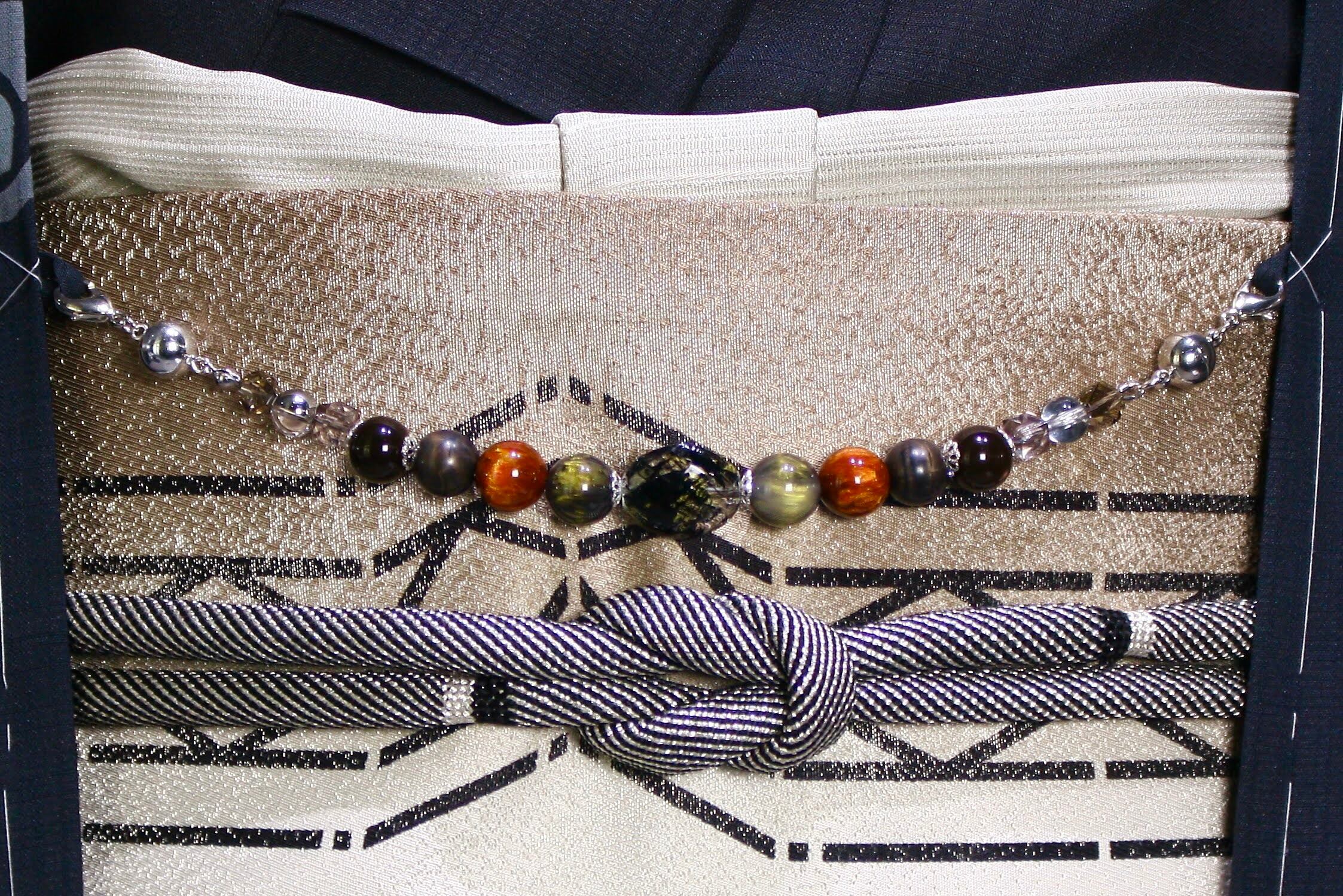 アクリルやガラスでできたビーズで作った、着物の羽織用の羽織紐です。