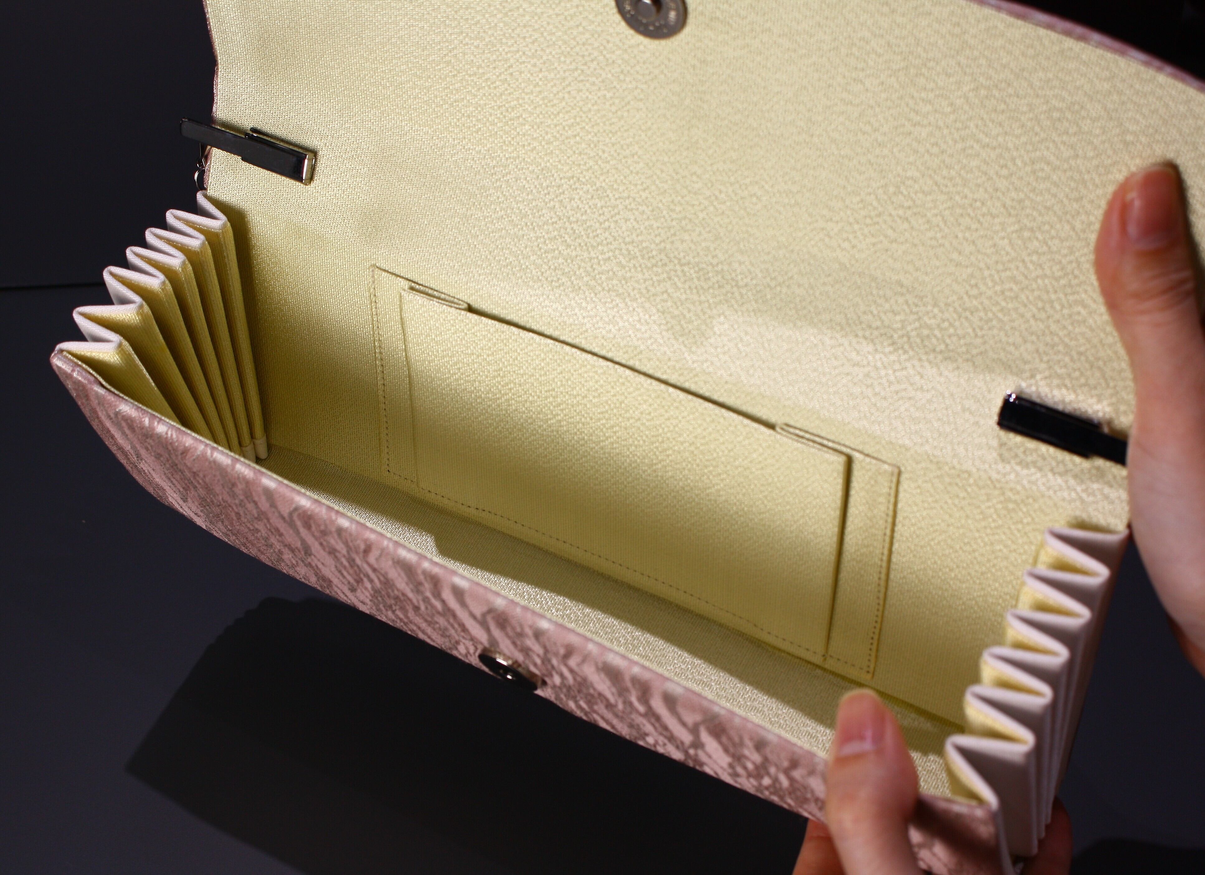 京都 西陣の緞子(どんす)の生地で作ったクラッチバックです。