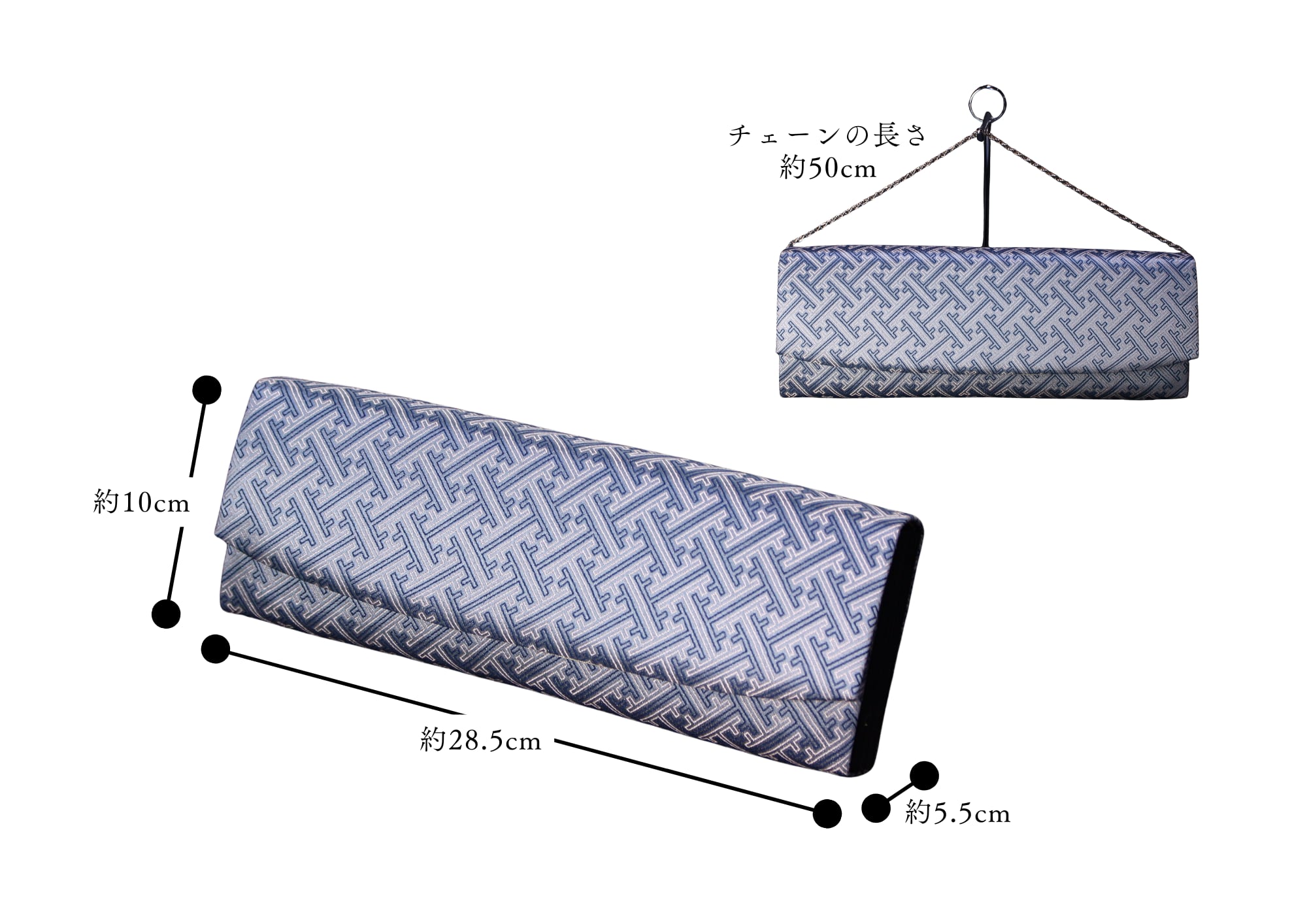 ◆サイズ(cm):幅 約28.5×奥行 約5.5×持ち手までの高さ 約10 / チェーンの長さ 約50 / 重さ 約277g