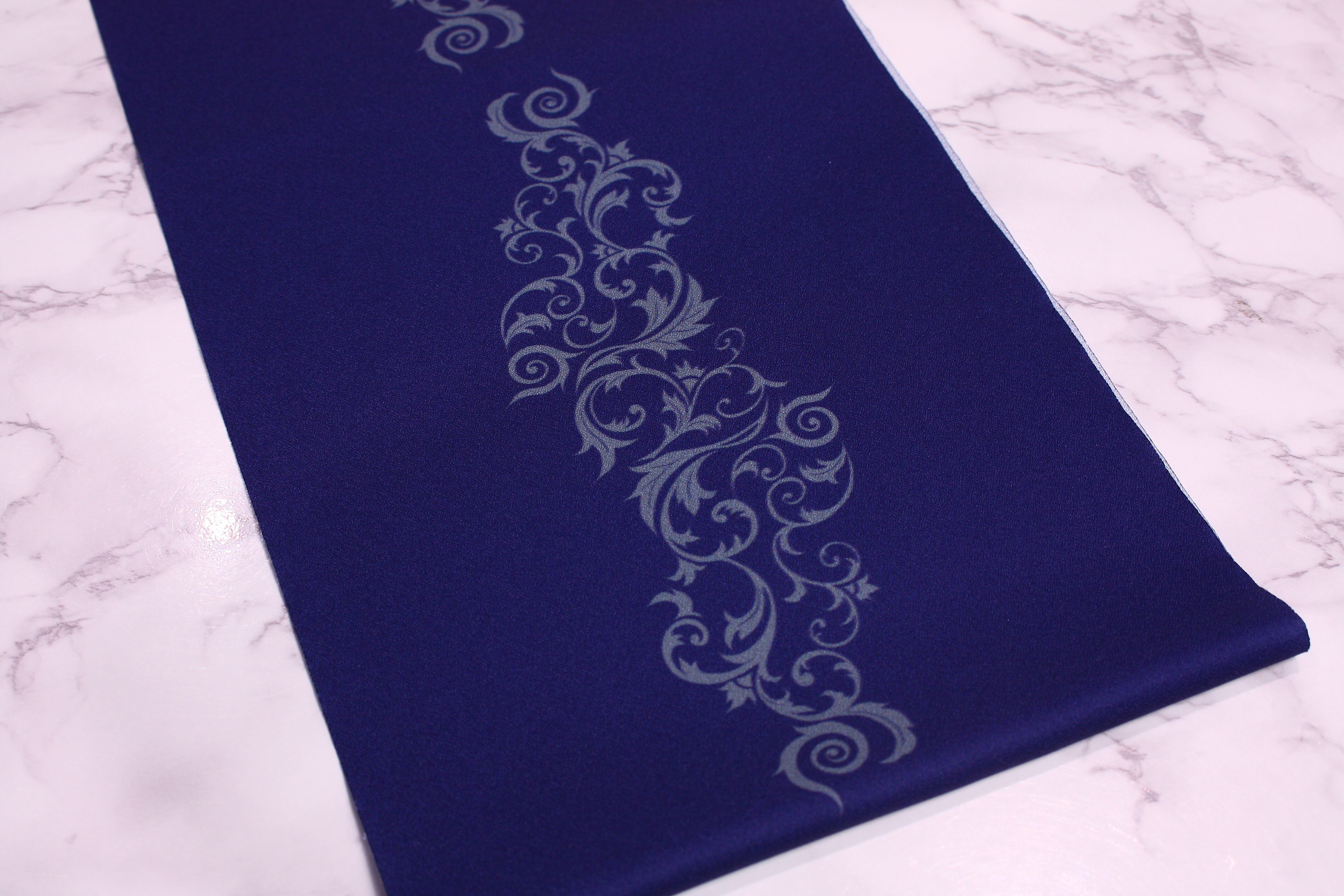 地色の青にグレーの唐草が映えるデザインに仕上げております。