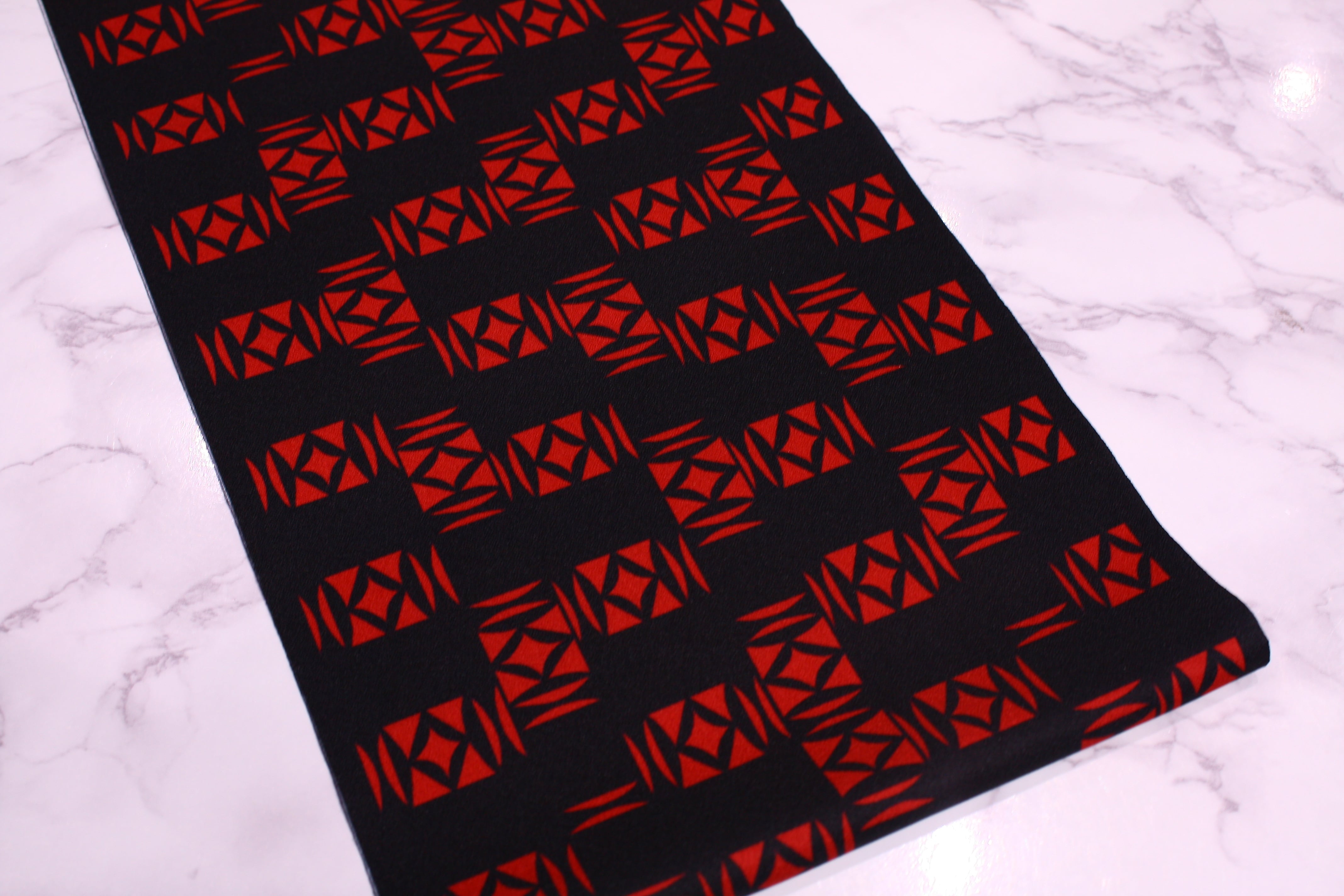 地色の黒に赤のロゴが映えるデザインに仕上げております。