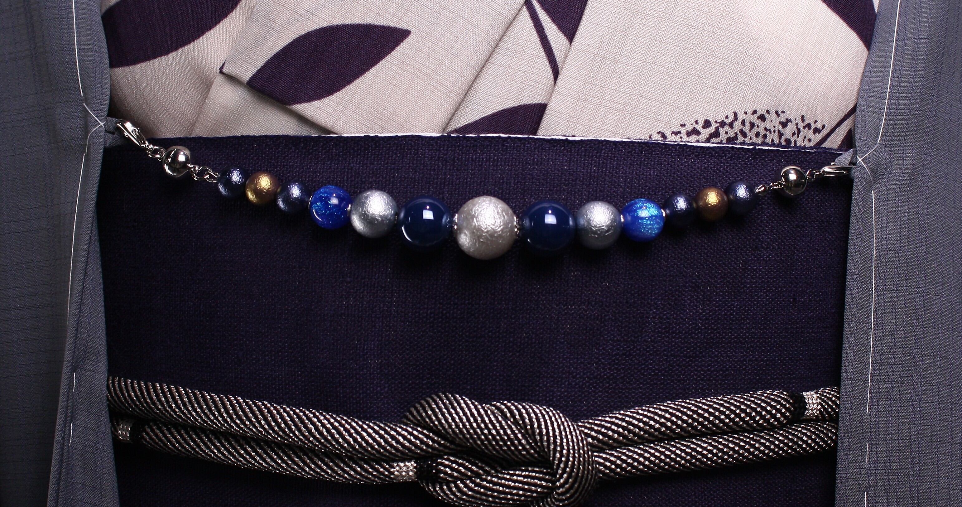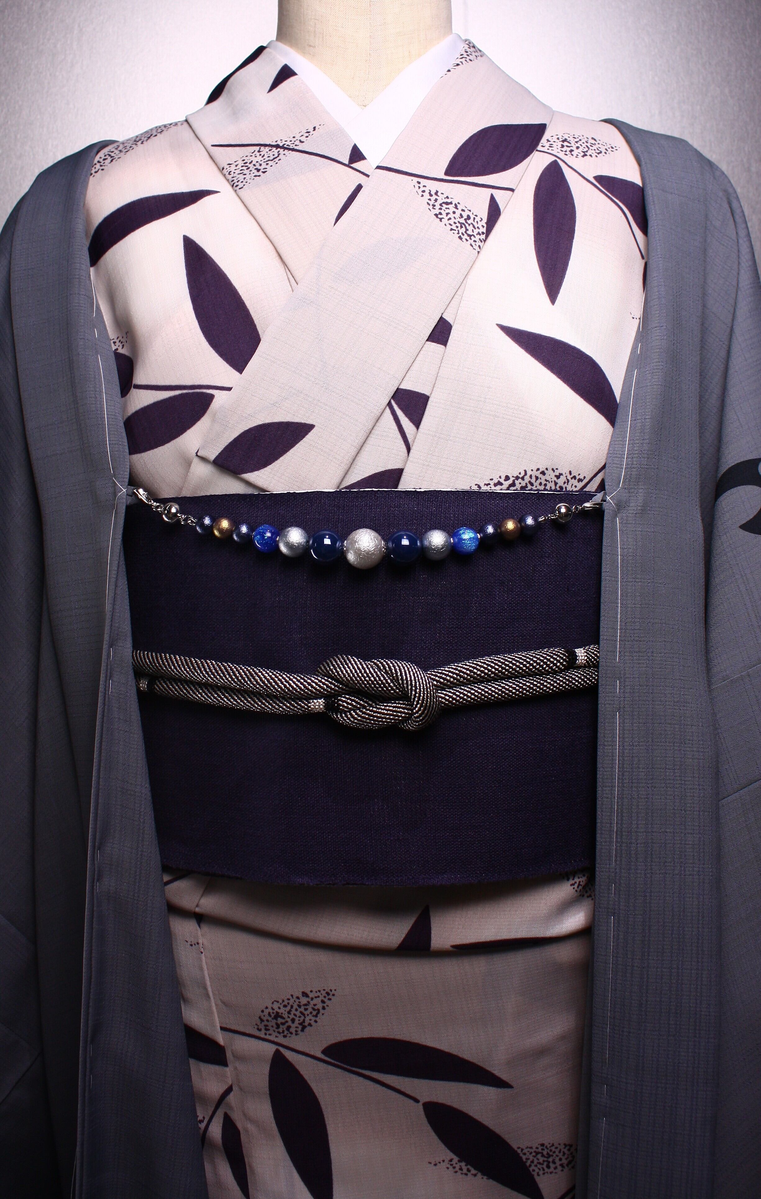 アクリルやガラスでできたビーズで作った、着物の羽織用の羽織紐です。